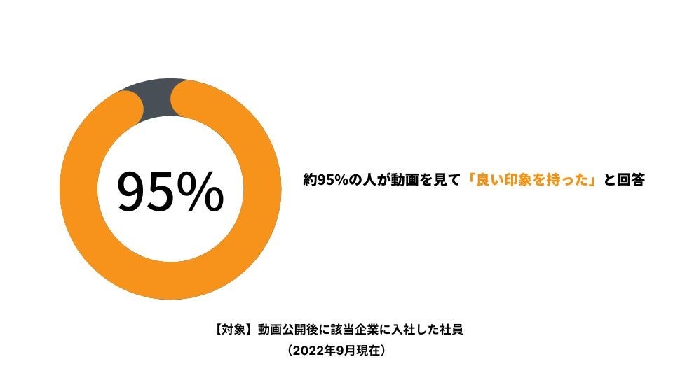採用ブランディング動画制作先企業に入社した社員へアンケートを実施し、多くの人が該当企業に対して良い印象を持ったと回答するなど、採用時・採用後の企業印象へパフォーマンスを発揮しています。