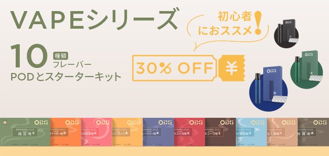 2. OiXi-VAPEシリーズを試してみたい方には、9/10~9/18まで、VAPEシリーズセット(スティック1本、カートリッジ1個)とフレーバーカートリッジが全て30%OFF!!