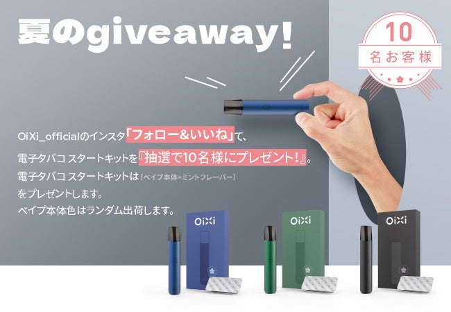 OiXiの公式Instagramアカウントをフォローして、該当の投稿に「いいね!」とリツイートをすると、抽選で10名様に霧化セット(デバイス1台+ハッカ味のカートリッジ1個)をプレゼントします。まだOiXiのSNSをフォローしていない方は、ぜひこの機会をお見逃しなく!