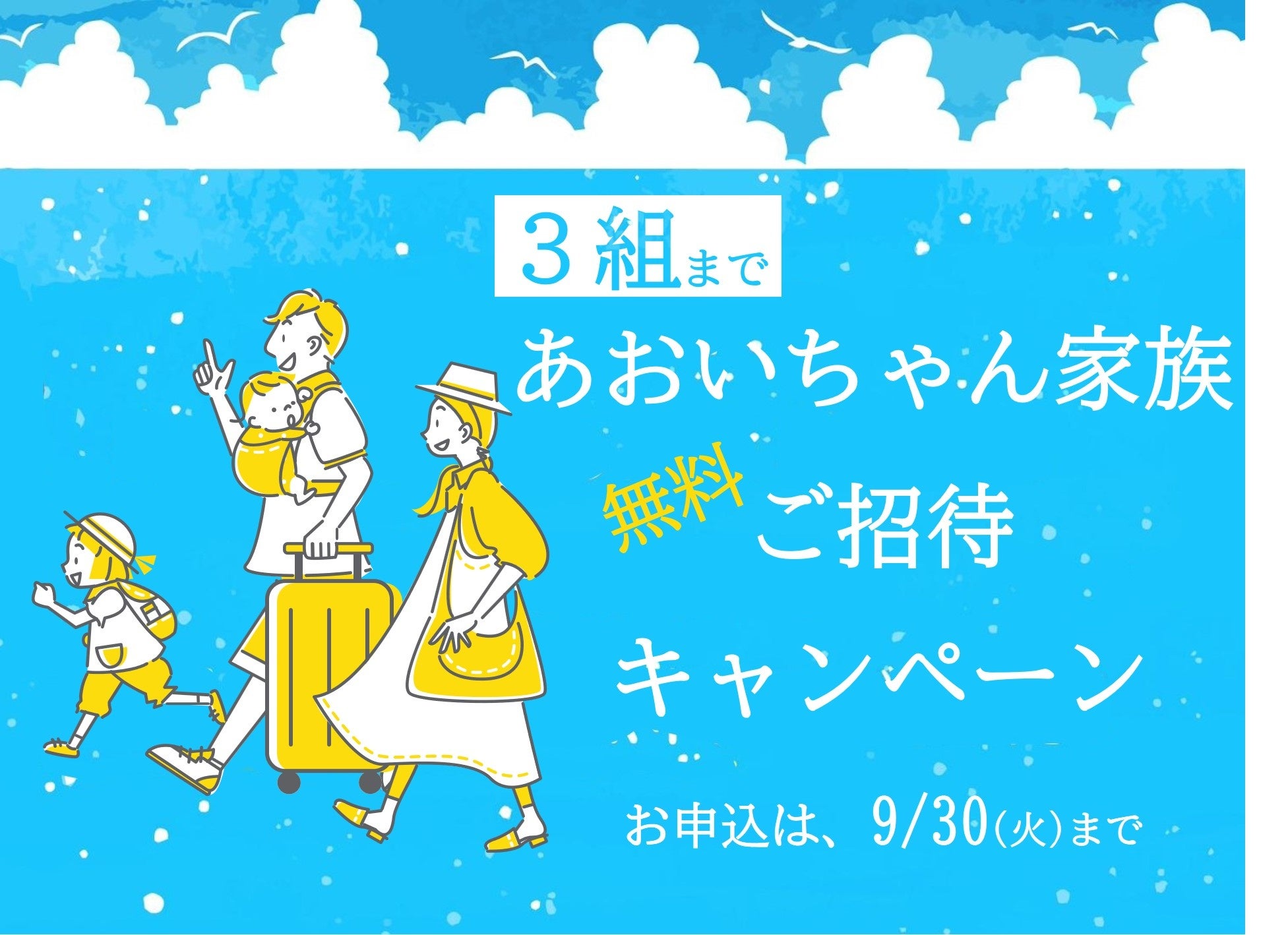 中学生以下の「あおい」ちゃんとそのご家族を、3組まで、神戸~小豆島行きジャンボフェリー「あおい」の初便にご招待します。当日は車や二輪車も含め、運賃を全員分無料といたします(往復をご希望の方は、10月22日から1週間以内に限り、帰りの便も無料)。