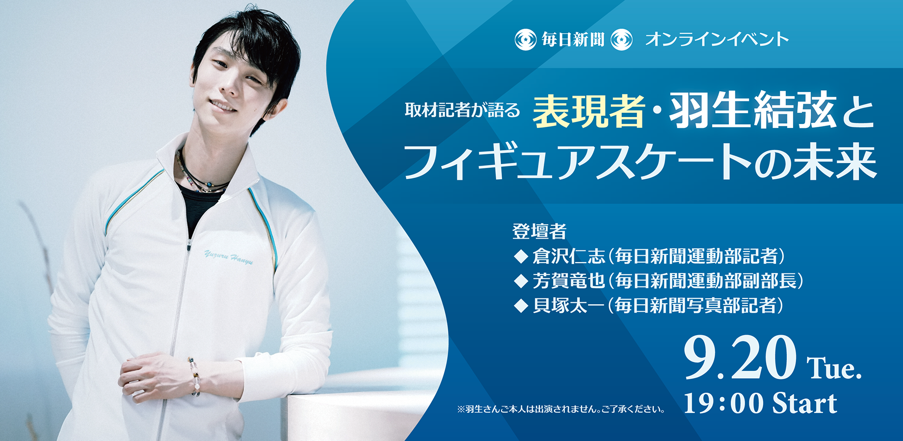 羽生さんは8月、地元・仙台で行ったプロスケーターとしての初滑り「SharePractice」をユーチューブでライブ配信。この模様については毎日新聞でも担当記者が紹介したところですが、今回のイベントでは、「SharePractice」も含め、羽生さんの取材を長く続けてきた記者とカメラマンが、その舞台裏について未掲載の写真とともに振り返ります。