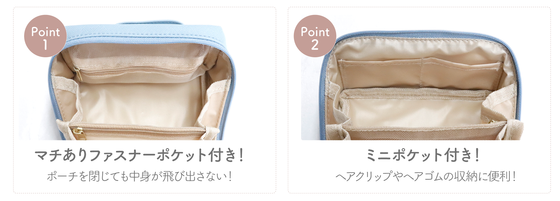 ・散らばりがちな、ヘアクリップやヘアゴムの収納に便利なミニポケット
