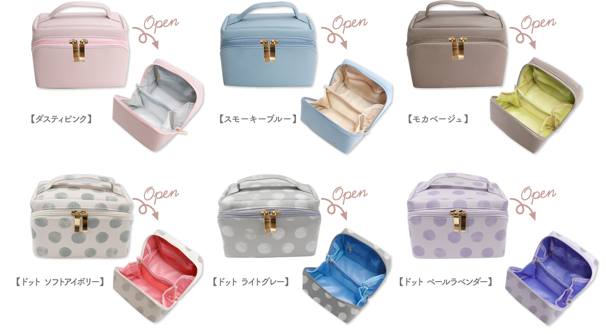 持ち手付きのバニティタイプなので旅行のお供にも便利◎