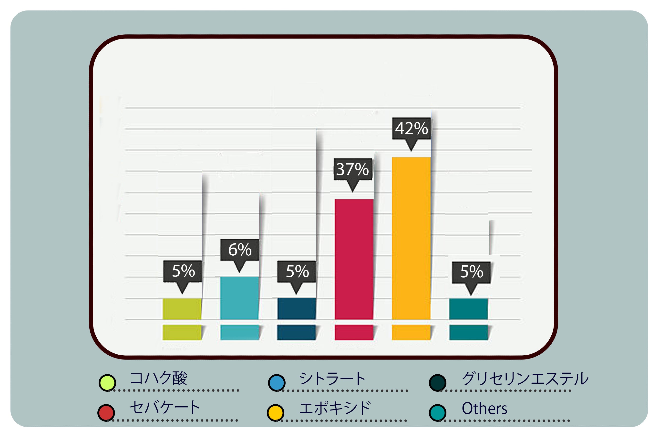 タイプに基づいて、市場はエポキシド、セバケート、コハク酸、クエン酸塩、グリセロールエステルなどに分類されます。