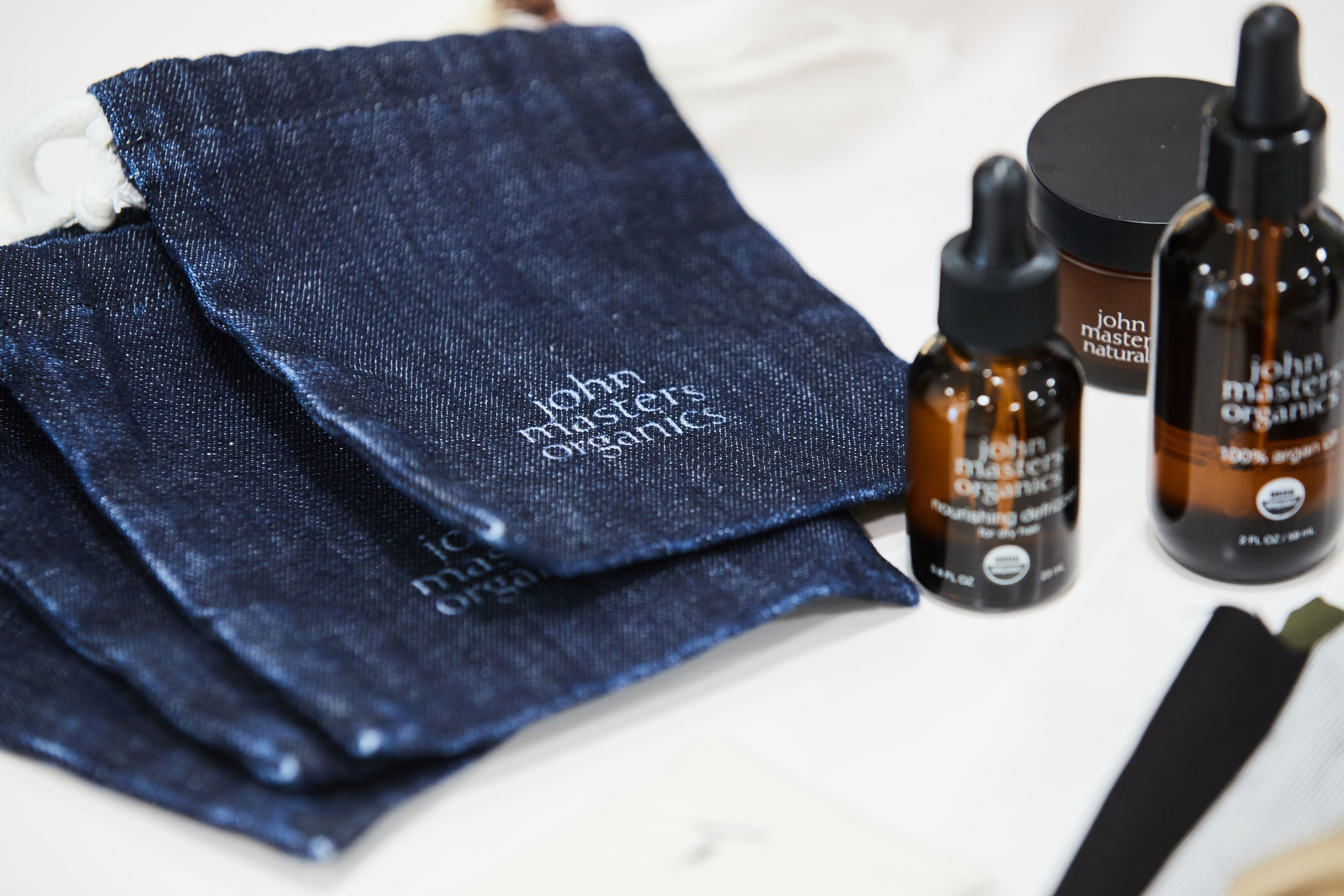 現在では、カイタックインターナショナルの自社工場でいくつかのスワッチ生地を選定し、定期的にジョンマスターオーガニックの倉庫へ残布を納品。工場から全国の店舗へ届けられ、瓶製品などのワレモノを店舗スタッフがひとつひとつ丁寧に残布で包み、お客さまへお渡ししています。そこに至るには、数多くの工程が必要です。しかし、それは決して無駄な作業ではなく、丁寧なものづくりと提供に直結することだと私たちは確信しています。