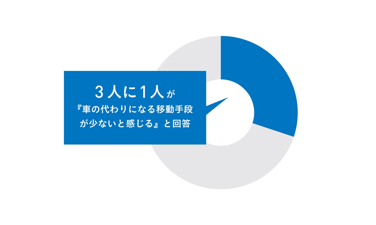 免許を返納した70〜80代男女に聞いたWHILL社調査(注3)によると、3人に1人が「車の代わりになる移動手段が少ないと感じる」と回答しています(円グラフ)。既存の移動手段を選ばない理由として多く挙がるのは、電動アシスト自転車だと「バランスが取りづらく、ふらついてしまう」「体力的にしんどい」、シニアカーだと「昔ながらの見た目で、積極的に乗りたいものではない」「自分向けの乗り物ではない」などでした。実際、こうした移動手段を選ばずに「免許返納前に比べて全体的に外出頻度が下がっていると思う」と感じる方が多くいらっしゃることも分かっています(注4)。