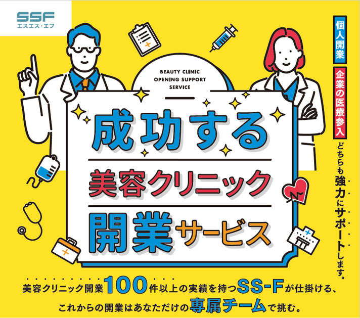 株式会社エスエス・エフ(本社:東京都新宿区、代表取締役社長:佐々木 威人、HP:https://ss-f.co.jp/ )は、レッドオーシャン化する美容クリニック市場の中で「成功する美容クリニック開業」をサポートすべく、美容クリニック開業専属チームを立ち上げました。徹底したコンセプトワークのもと、クリニック開業と経営を成功に導きます。