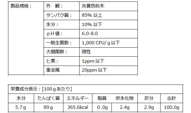 | 用 途: | タンパク質補給食品専門のタンパク質原料 |