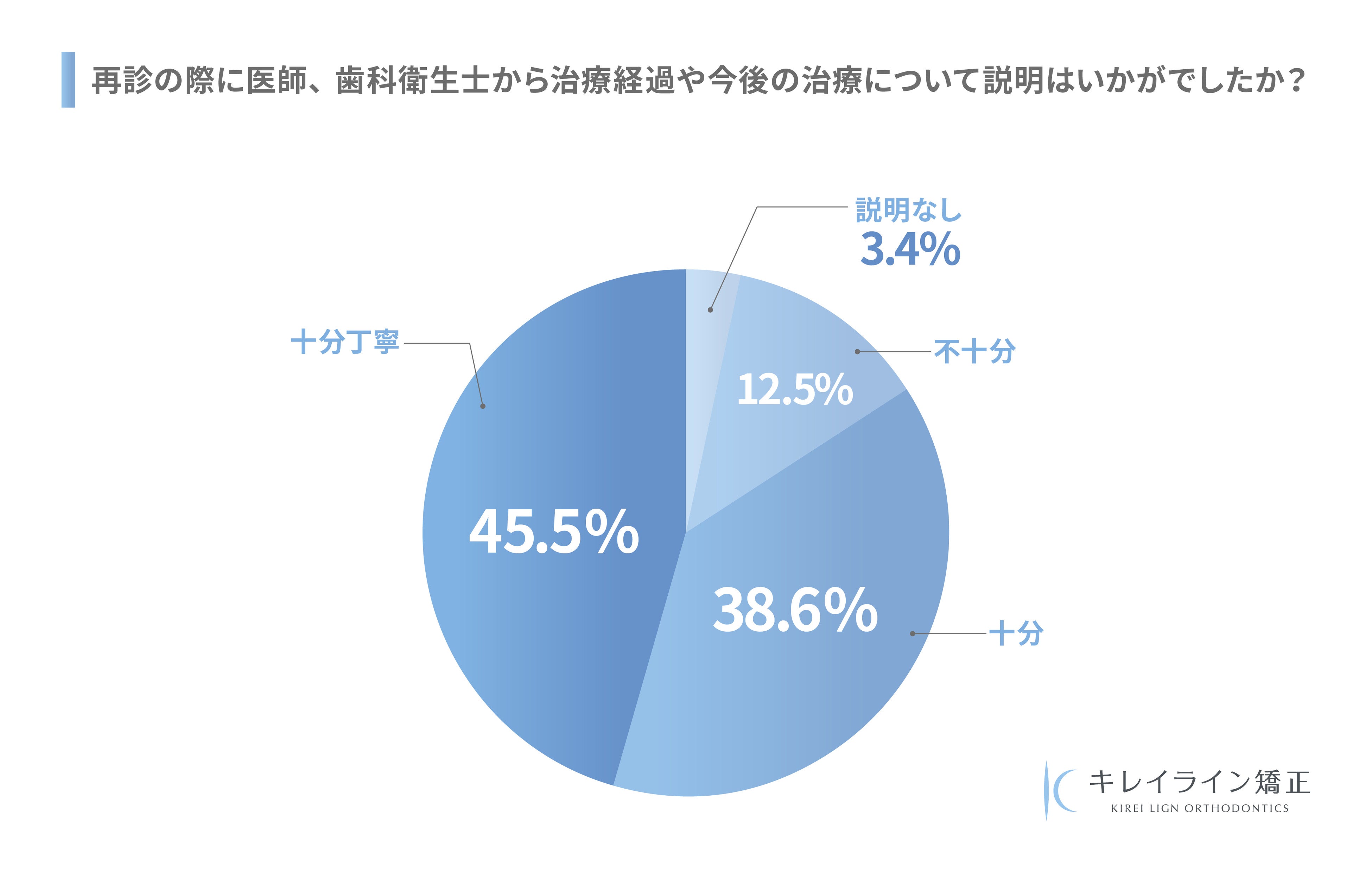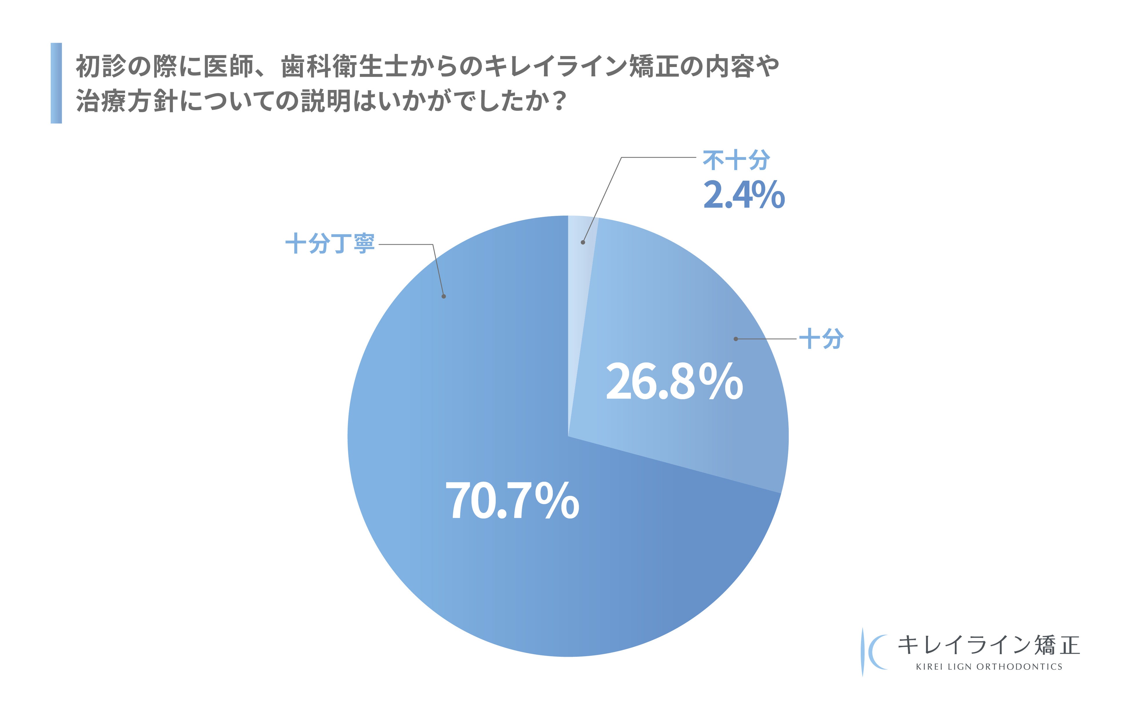 キレイライン矯正では、この問題を重く受け止め、まずは外部の調査会社を通じて過去の患者様に対して治療満足度のサンプリングアンケートを実施いたしました。