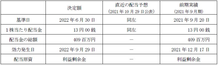 2022年6月30日を基準日とする剰余金の配当