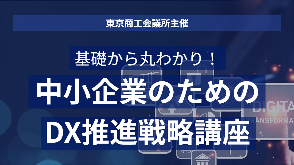 この度、東京都助成金を活用し、中小企業のDX推進を積極的にサポートしている支援機構である東商に、「DX人材育成のためのスキルアップ講座」の導入編として「基礎から丸わかり!中小企業のためのDX推進戦略講座」コンテンツを、無償で提供いたします。