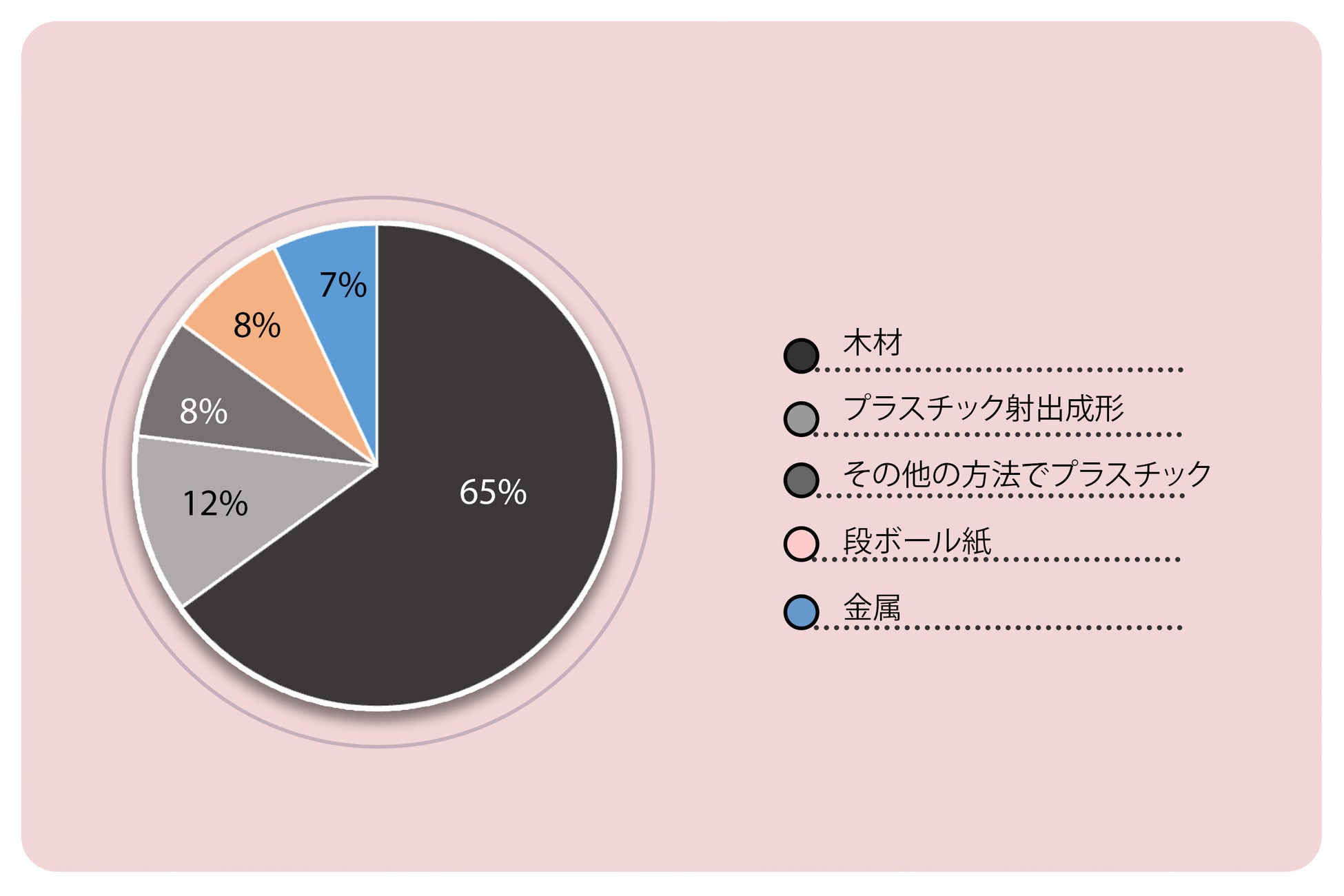材料によって、市場は木材、射出成形によるプラスチック、その他の方法によるプラスチック、段ボール紙、および金属に分類されます。