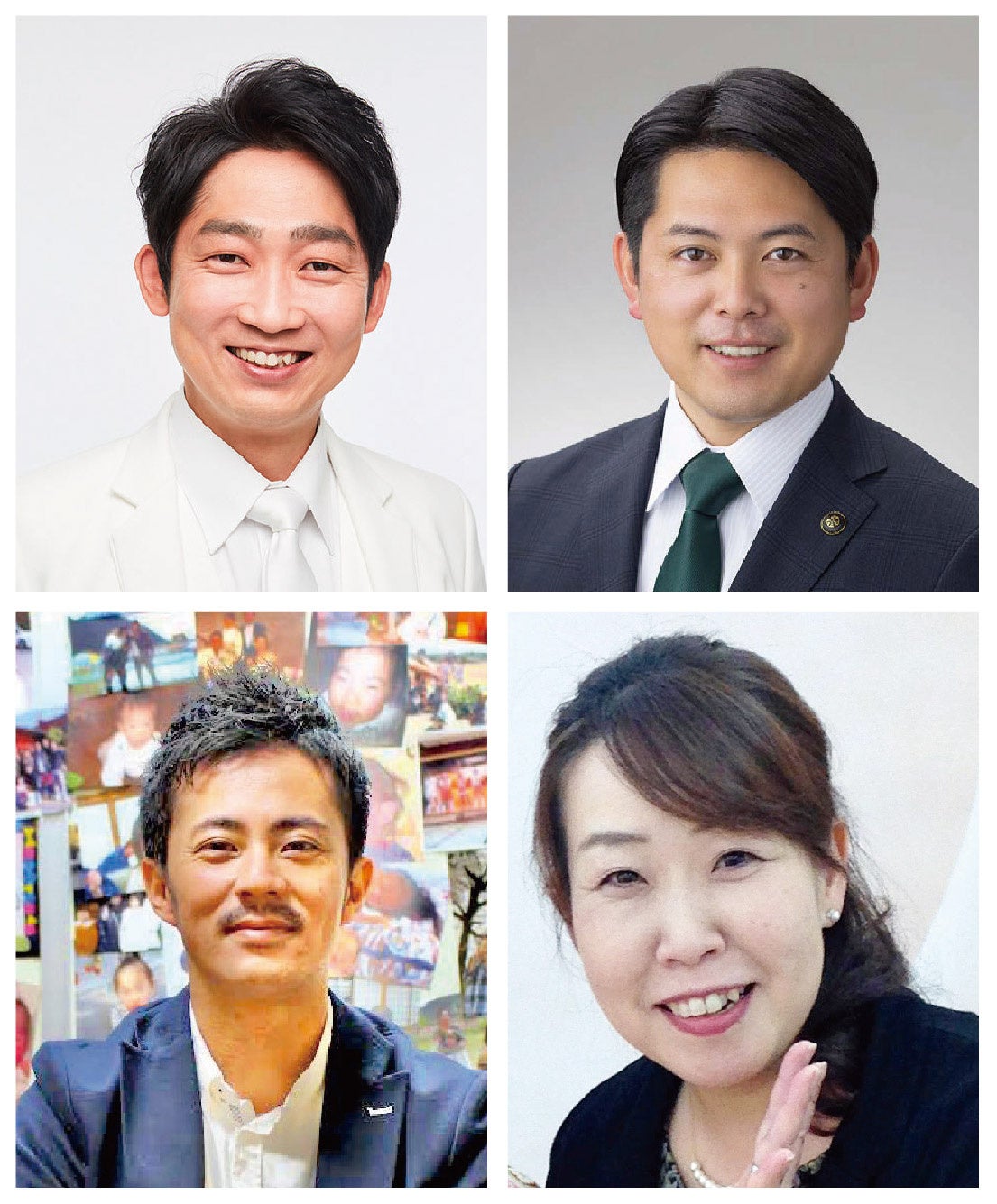 ●NON STYLE石田さん、岐阜市長、ぎふし共育・女性活躍企業(アースクリエイト(有)代表取締役社長 岩田良さん)、地域の子育て支援団体(NPO法人グッドライフ・サポートセンター理事長 中島由紀子さん)