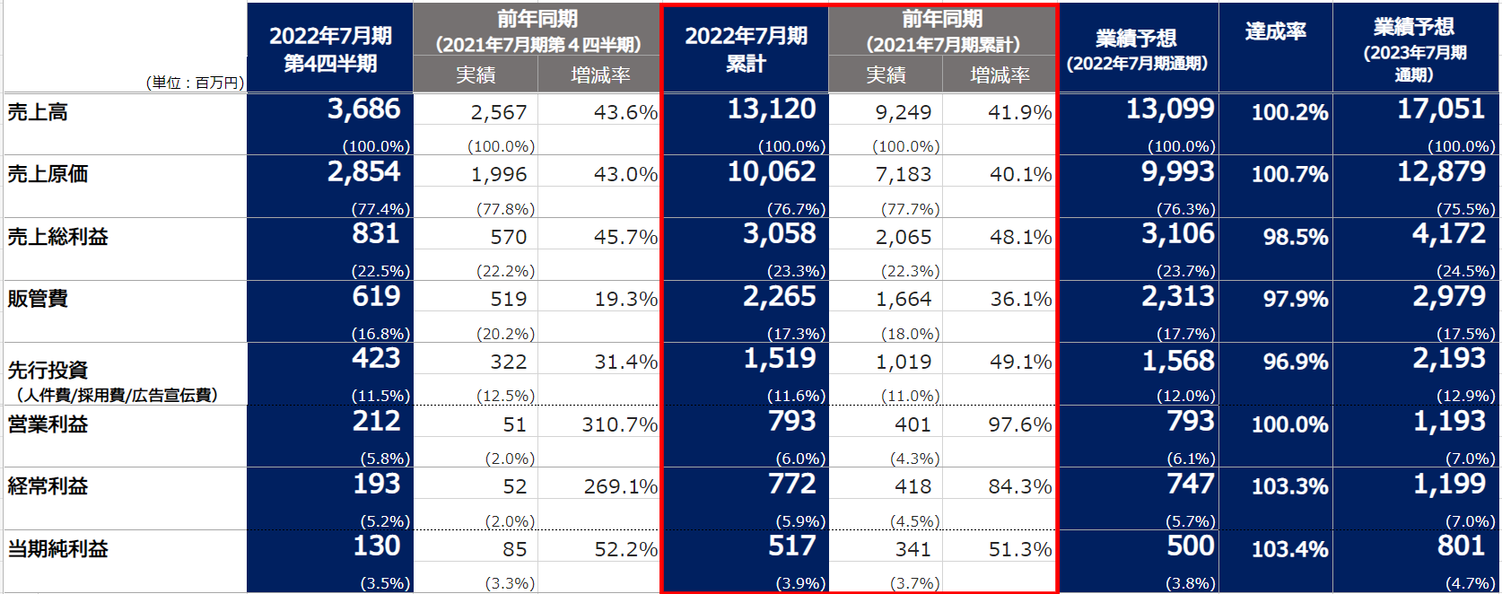 2022年7月期の決算説明資料は、9月26日に当社HPよりご案内予定です。