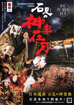 島根県西部9市町と島根県等で構成する石見観光振興協議会では、この3か月を“石見の神楽在月”と銘打って広くPRしています。今回、東京でのPR第一弾として日比谷しまね館で“石見の神楽在月”のイベントを開催します。この機会に伝統芸能“石見神楽”の世界に触れてみてください。