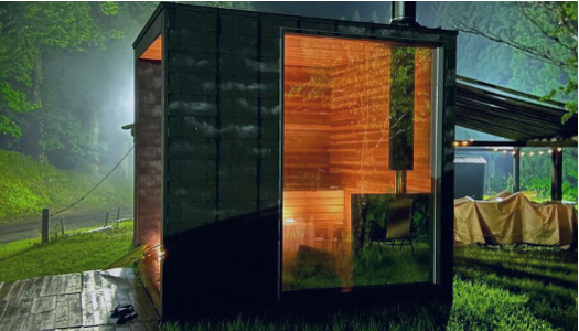 キャンプサイトにプライベートサウナが登場。ロウリュを楽しむことができるフィンランド式サウナと、森の中にたたずむキュービックサウナの2種類から、好みに合わせて利用できます。体を温めた後は、近くの川でリラックスできるのも、キャンプサイトならでは。