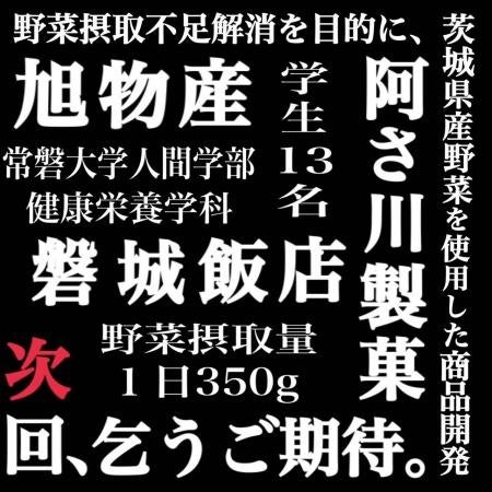 この取組は、常磐大学人間学部健康栄養学科  飯村 裕子 准教授のゼミナール学生13名と共に野菜摂取不足の解消、野菜摂取量の拡大をテーマとし、茨城県からの助言をいただきながら茨城県産野菜を使用した商品開発につなげるものであり、学生たちの将来のキャリア形成の一助となるよう進めております。