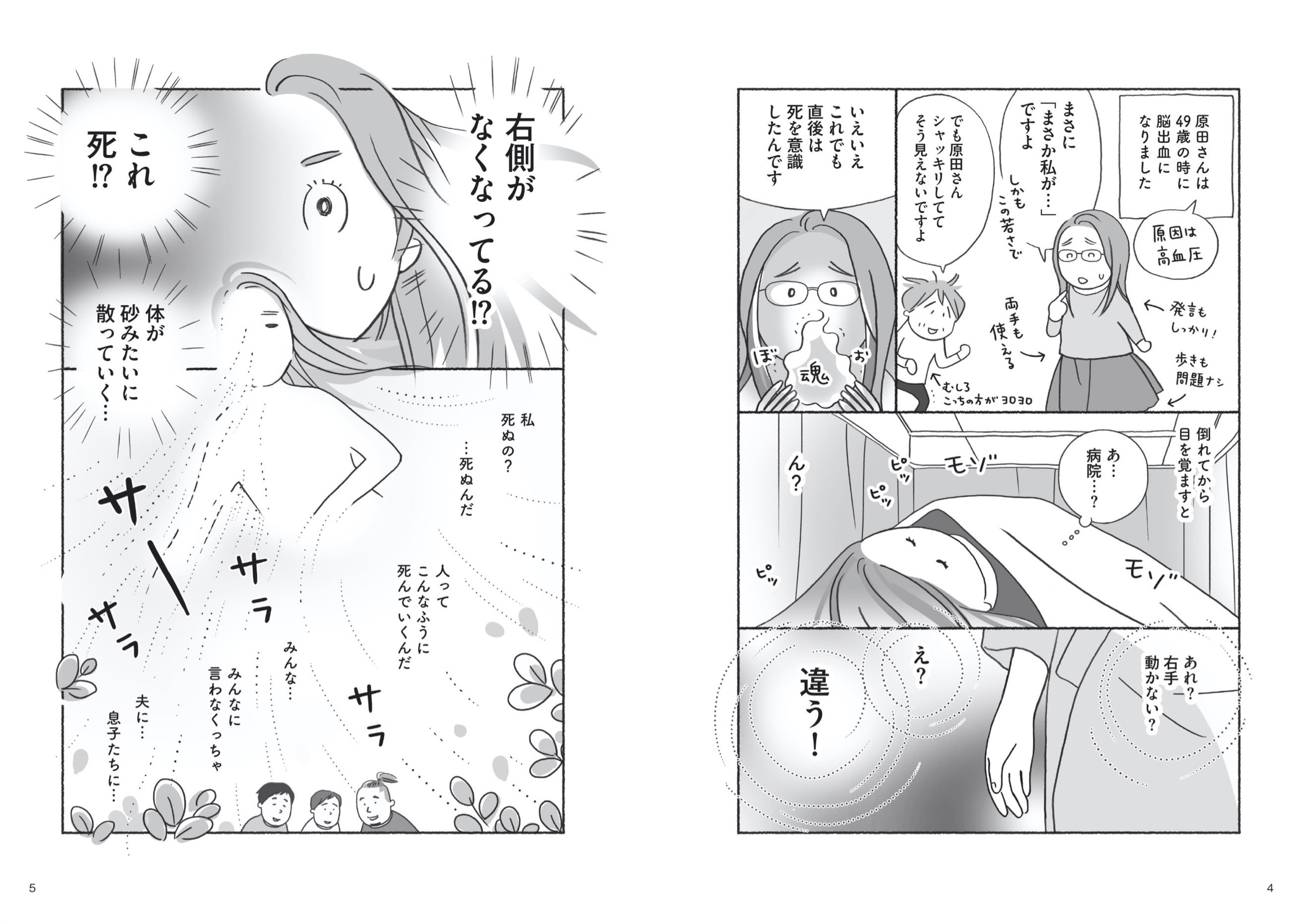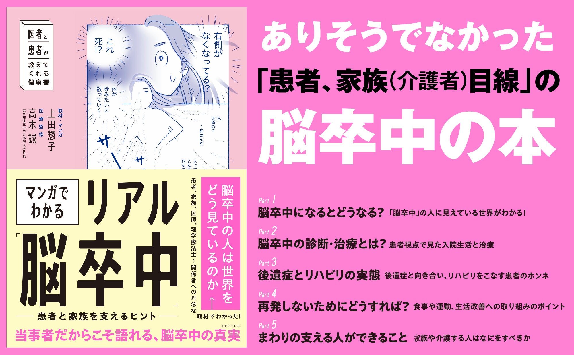 本書は「脳卒中になったら、体はどうなってしまうの?」「治療は?」「後遺症は?」「リハビリは?」「家族やまわりの人は何をすれば?」「これからの生活はどうする?」といった、患者と家族から見た脳卒中の“リアル”を、当事者への材をもとにマンガにしました。
