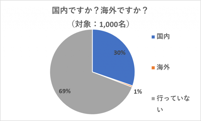 旅行先については、「国内」という回答が30%、「海外」という回答は1%となっており、大半の人が国内旅行を楽しんでいたことが分かりました。