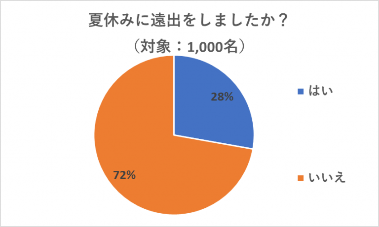夏休みに遠出をしたと回答した人は、28%となっており、残りの約7割の人は遠出をしていないことが分かりました。コロナ禍の影響で遠出を控えている人もまだ多いのかもしれませんね。