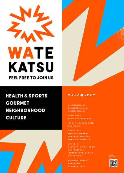 ロゴデザインには、ワテラスのコンセプトである「WA(和・輪・環)」を受け継ぐ、アクティブなコミュニティを想起させるイメージを採用しました。 ワテカツでは、2022年9月より、「学び・カルチャー」「食」「健康・スポーツ」「ネイバーフッド」という4つのラインを設け、大規模なトークイベントから小さなワークショップまで多様なイベントを展開して参ります。ぜひ一度、お気軽にお立ち寄りください。