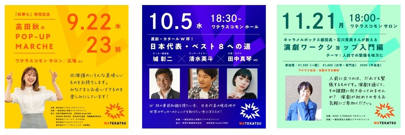 ※イベントの詳細や申込方法などは、ワテラス公式HP(https://www.waterras.com/)よりご確認ください。