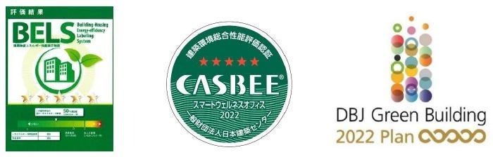 このほか、CASBEE スマートウェルネスオフィス認証(Sランク)やDBJ Green Buildingプラン認証(5つ星)を取得しました。