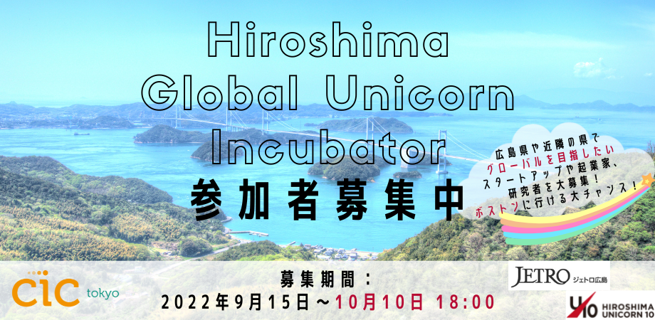 イベント詳細と参加登録:https://hiroshima-global-unicorn-incubator-info-session.peatix.com/view