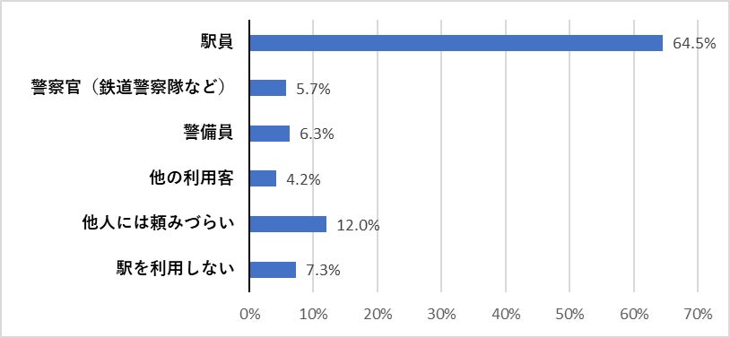 では、実際に駅で困っている人はどのくらいいるのか?トラブルに遭遇したら、誰に助けを求めたいのか?など、実際に駅や電車を利用している人ならではの声がありました。