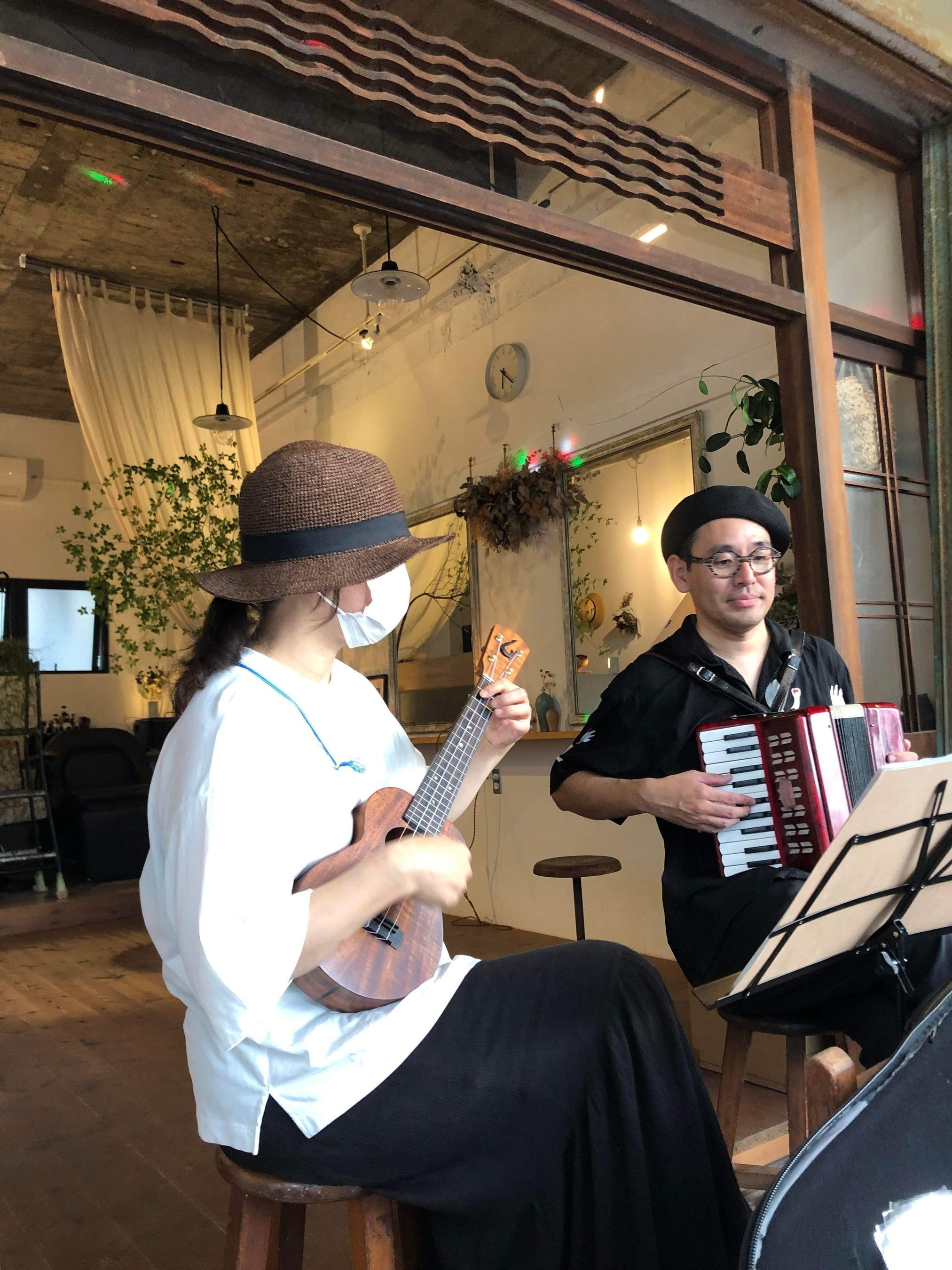 4. アート空間でアコーディオン&ウクレレを楽しむ「小さな演奏会」