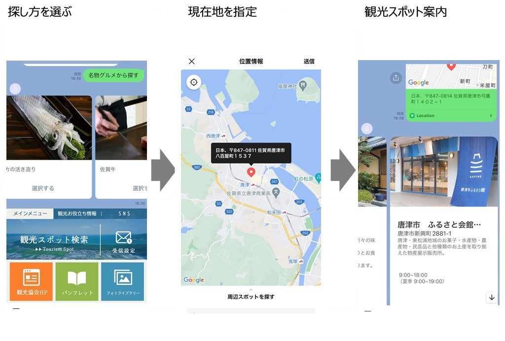 今回、唐津観光協会に採用いただいた観光スポット機能は、プレイネクストラボが「LINE SMART CITY GovTechプログラム」を独自にカスタマイズして開発しております。
