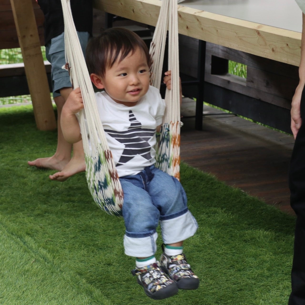 ブランコサイズの小さなハンモック(耐荷重100kg)を好きな色で作るワークショップです。