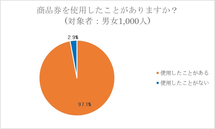 商品券を使用したことがありますか?という質問に、商品券を利用したことがある人が97%でした。利用したことがない人は、3%という結果になりました。 多くの人が、商品券を利用したことがあるという結果になりました。