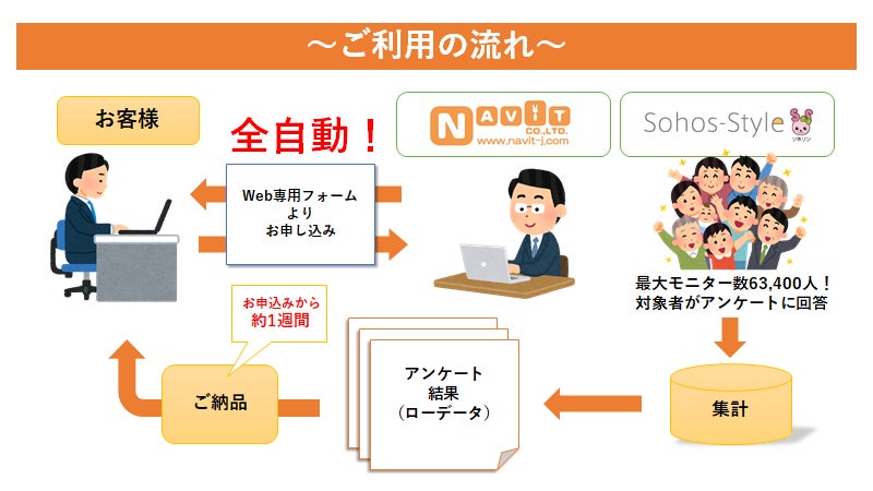 「1000人アンケート」とは、ナビットが運営する「Sohos-Style」へ登録している全国約63,400人の調査モニターを対象に、性別、年齢、居住地、属性など実態の明らかなモニターを絞り込んでアンケートを実施出来るサービスです。