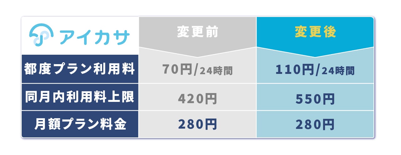 そしてこの度、より多くの方にアイカサを提供できる環境を作るため、ステークホルダーの皆さまに更なる満足度をお届けするため、かつ、昨今の円安進行、原油高や人件費の高騰による仕入れ値の大幅増加の影響を考慮し、月額使い放題プランのご利用料金はこれまでと変わらずに、都度利用プランのご利用料金を改定する運びとなりました。料金改定後も引き続き、対応エリアや設置先のさらなる拡充による利便性向上、環境保護活動促進など、サービスの品質向上に努めて参ります。