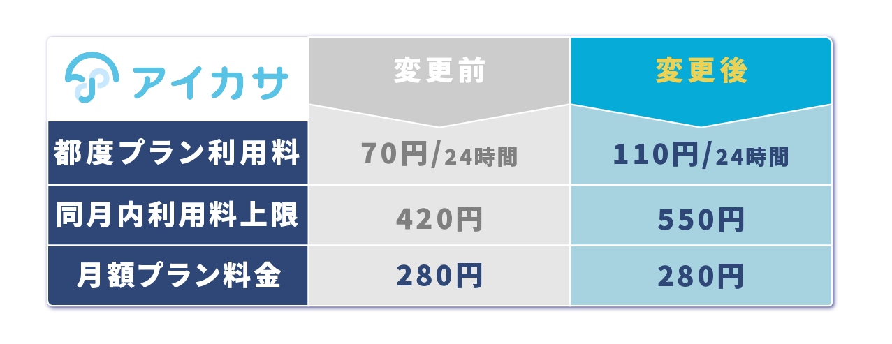 そしてこの度、より多くの方にアイカサを提供できる環境を作るため、ステークホルダーの皆さまに更なる満足度をお届けするため、かつ、昨今の円安進行、原油高や人件費の高騰による仕入れ値の大幅増加の影響を考慮し、月額使い放題プランのご利用料金はこれまでと変わらずに、都度利用プランのご利用料金を改定する運びとなりました。料金改定後も引き続き、対応エリアや設置先のさらなる拡充による利便性向上、環境保護活動促進など、サービスの品質向上に努めて参ります。