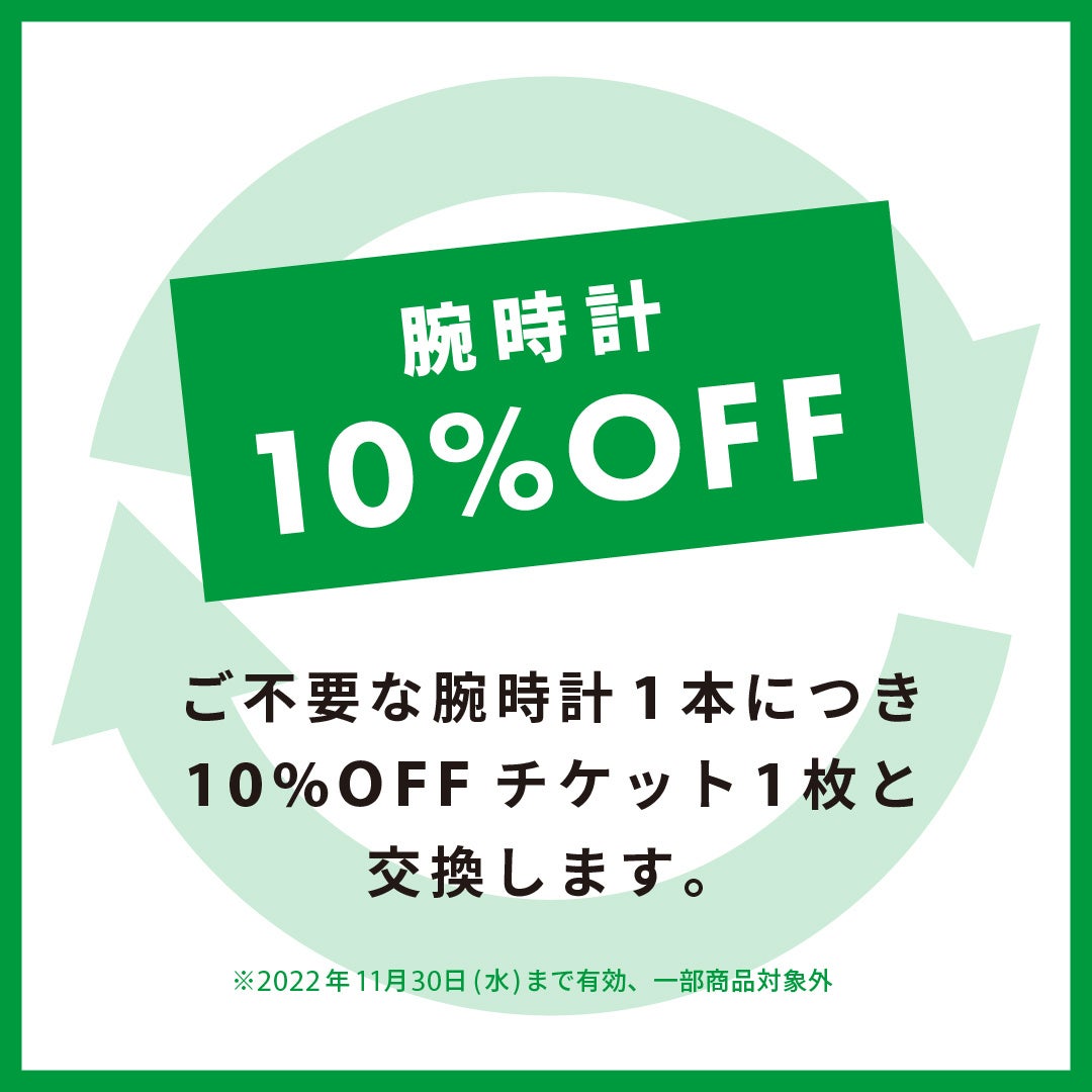ご不要な腕時計1本回収につき、「腕時計10%OFF*チケット」を1枚プレゼントいたします。