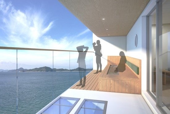 ■専用テラス(足湯&床窓バルコニー「海のテラス」、フライングブリッジ「光のテラス」、フォワードデッキ「風のテラス」)