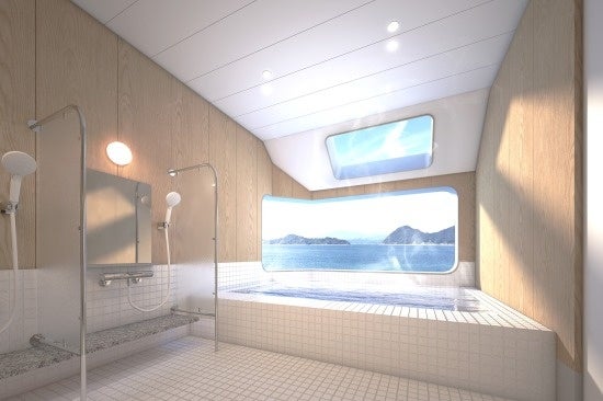 ・国内フェリー初となるハングオン構造(空中にせり出した構造)のお風呂と足湯