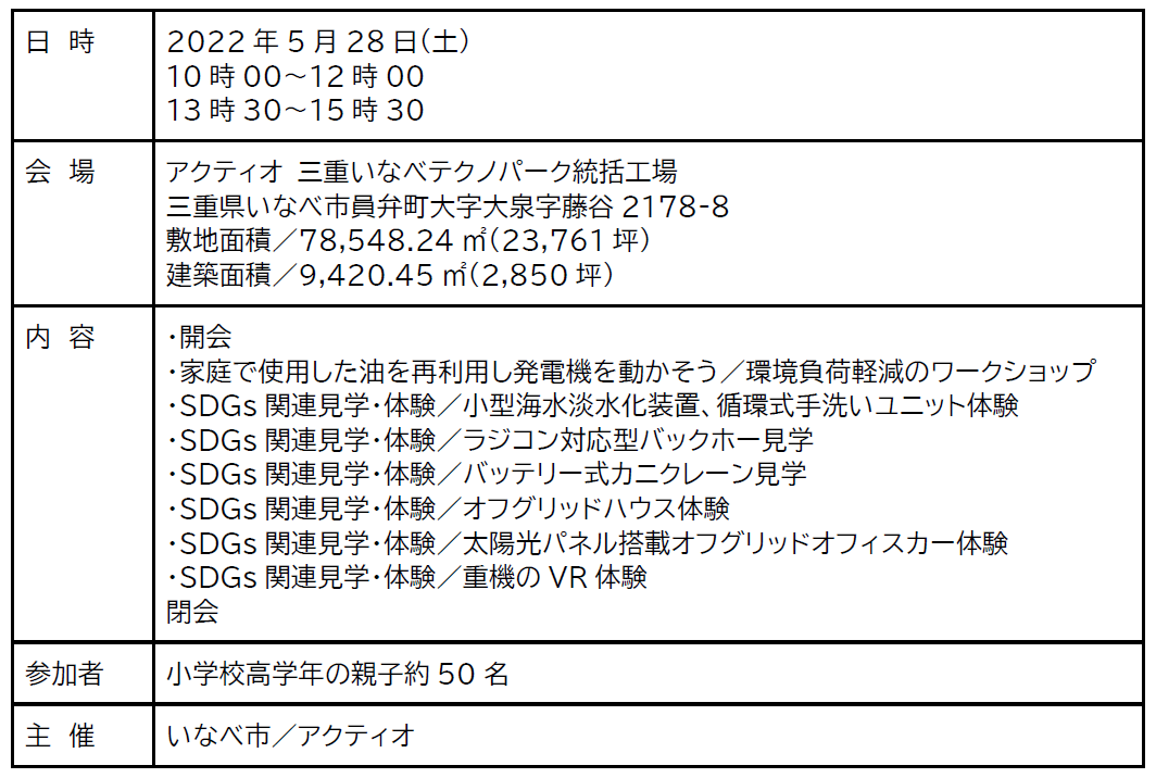 今回の体験学習では、「大型建設機械」と「地球環境に優しいアクティオの施策」を通し、いなべ市の子供たちに有意義な学習機会となるよう、今回のSDGs体験型ワークショップを実施させていただきました。