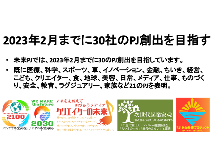 現在、2023年2月までに30社の設立を目指し、推進中です。いずれも社会課題、社会的意義、業界課題の解決を大切にしており、議論し尽くされていない課題を抽出しいたします。そして、受け止め、実際にどうやったら納得感があるのか、を個人個人の方々が考えるまでのプロセスを作りたいと考えています。
