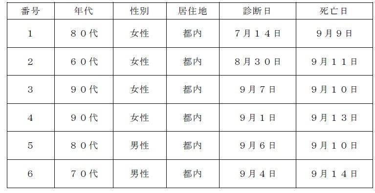 新型コロナウイルスに関連した患者の死亡について business Twitter Facebook はてブ Pocket LINE コピー 2022.09.18 この記事は約1分で読めます。 都内で新型コロナウイルスに感染した方が死亡されましたのでお知らせします。 お亡くなりになった方のご冥福をお祈り申し上げます。 ※ 患者・御家族の人権尊重・個人情報保護に御理解と御配慮をお願いします。