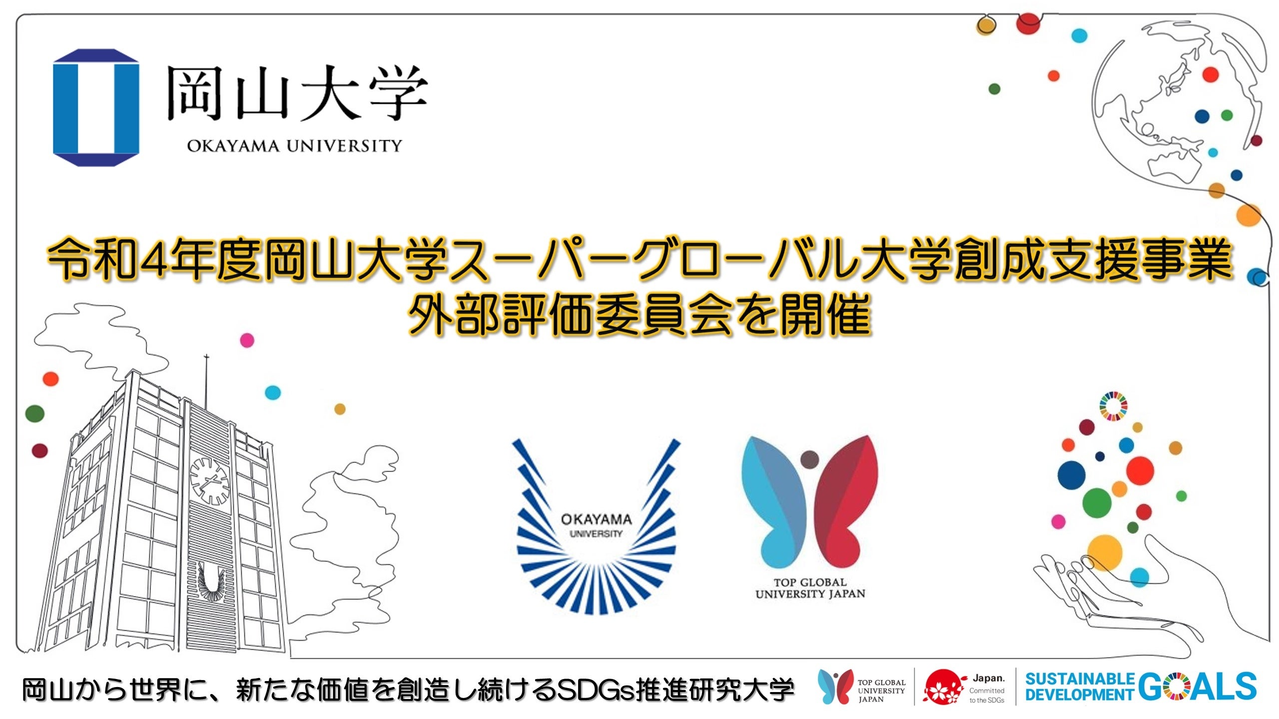 国立大学法人岡山大学(本部:岡山市北区、学長:槇野博史)は2022年9月2日、文部科学省の「スーパーグローバル大学創成支援事業」の支援対象に選定された本学の構想「PRIMEプログラム:世界で活躍できる『実践人』を育成する!」の実施状況について、令和4年度の外部評価委員会をオンライン会議形式にて開催しました。