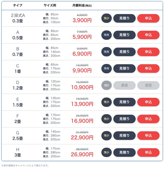 荷物以上に大きな部屋を借りてしまうことや、狭すぎて荷物が入らなかったなんていうトラブルを回避できます。