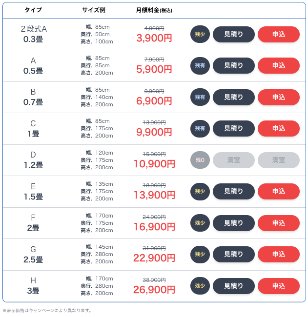 荷物以上に大きな部屋を借りてしまうことや、狭すぎて荷物が入らなかったなんていうトラブルを回避できます。
