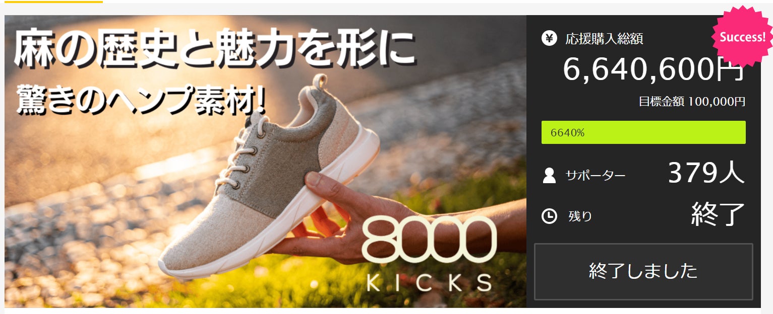 『8000KICKS』が提供するエシカルシューズ「Explorer V2.0」(定価:税込19,800円)は、2020年に実施した米国のクラウドファンディング「Kickstarter」と「Indiegogo」で合計6,200万円以上の資金調達に成功、日本では2021年春にクラウドファンディングを実施、合計660万円の支援を受けました。