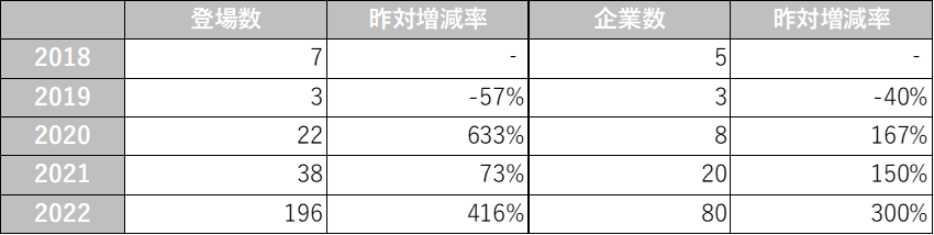 ※登場数とは当該書類における単純な登場数の合計であり、企業数とは当該ワードを述べた企業の数である。例えば1社が当該ワードを書類内で2回述べた場合には、登場数は2、企業数は1とカウントしている(以下同様)。