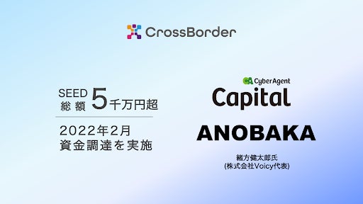 日本初のセールスインテリジェンス「Sales Marker(セールスマーカー)」を展開するCrossBorder株式会社(代表取締役:小笠原羽恭)は株式会社サイバーエージェント・キャピタル、株式会社ANOBAKA、緒方 憲太郎氏 を引受先としたJ-KISS型新株予約権の発行により、シードで5,000万円超の資金調達を実施しました。