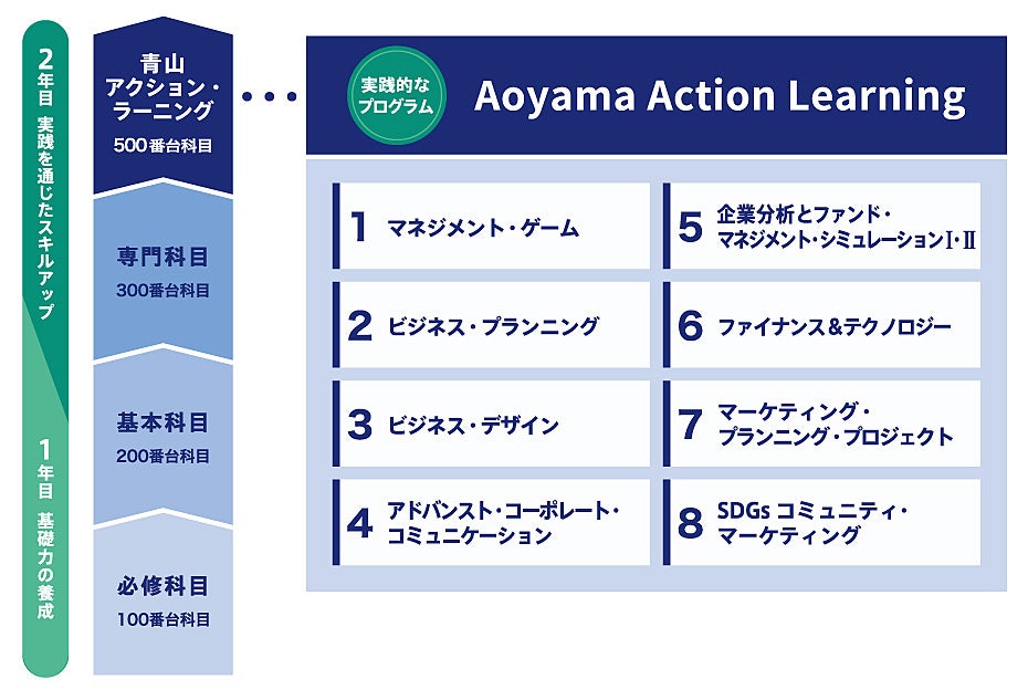 (青山アクション・ラーニング イメージ図)※科目は2022年度設置のもの
