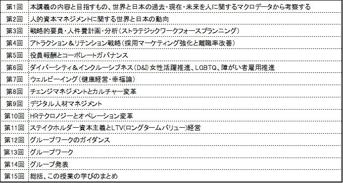 経営を将来/現在担う人材にとって必須の組織・人事領域に関する体系的な概論理解及び現代に求められる重点組織・人事領域に対する実践的な事例や方法論の把握を通じて、組織・人事コンサルタントまたは事業会社の管理職レベルに求められる組織・人事に関する課題解決スキルを習得する。